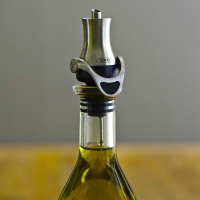 The Oil Stopper/Pourer is perfect for pouring and storing fresh olive oil. Use the Stopper/Pourer to drizzle oil onto your favorite dish or pour oil into a salad. Push the soft, comfortable lever down and the bottle is sealed for storage. Lift the lever up and the seal is opened for ... View Video